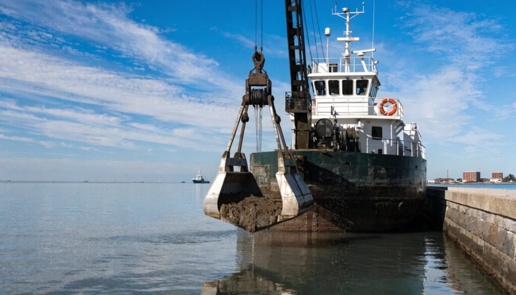 | Grab Dredger | Confined areas, deep pockets | Deep digging capability, handles debris well | Slower cycle, can be affected by currents |